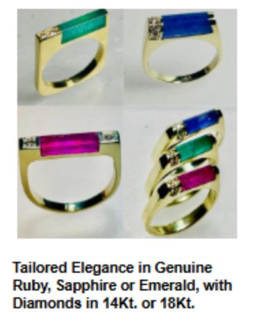 This is a sampling of some of our Deluxe Minimalist Collection. We have many other styles of rings to choose from both custom and in stock. All are available in your choice of precious metals, diamonds and colored stones and custom manufactured in your size.